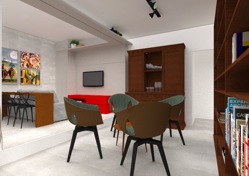 Trabalho . Uma decoração que mistura o novo com o antigo de forma a preservar as memórias da família e aliar com a nova geração que chega. A setorização é o ponto forte do projeto, a sala de jantar foi para perto da cozinha, dando mais funcionalidade e concentração na hora de compartilhar esse momento à mesa com os familares. A proposta da sala foi deixar o ambiente mais amplo e fluído, a sala de TV ficou mais reservada e o centro foi ocupado por uma sala de conversação. A brinquedoteca, espaço do brincar e do estudar, recebeu muita cor e espaços bem delimitados, com parede coberta por tinta tipo lousa, bancada de estudos, banco com futtons e baús para guardar e organizar os brinquedos. Belo Horizonte – MG